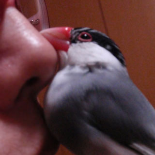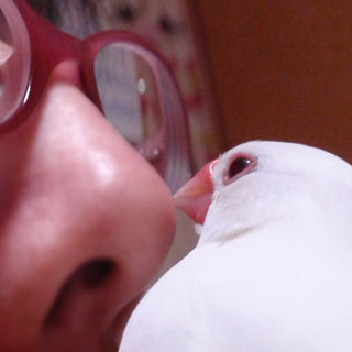 ただですね、文鳥のにほひをかぐからには、ワタクシの鼻などがアップで写っておりますので、要注意です(笑)。