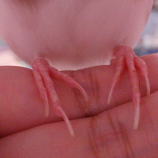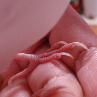 まずは、チビッコ・桜をむんずと捕まえ、なんちゃって保定をして(汗)、指を1本ずつ引き出しながら、大胆に切りました(笑)。