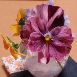 そんな間にも、我が家の庭では、11月の下旬に植えたパンジーやヴィオラたちが、花を咲かせてくれておりまして、ようやく、朝摘みのお花を飾ることができるほどになりました!