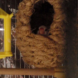 で、あわてて、もしゃ系の巣を設置しましたが、その夜は巣を覗くも入らず、いつも通り、夜しかとまらない(とまれないとも言う!)自然木の止まり木の上で寝ました。