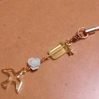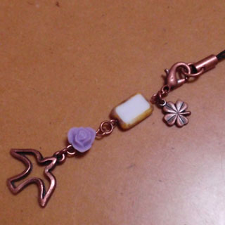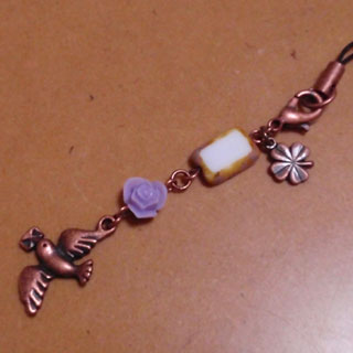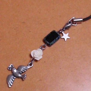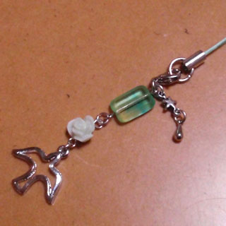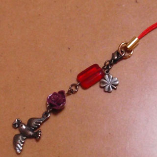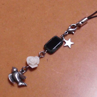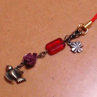 さて、昨日、またしても「彼女」がつぶやいておりました通り(笑)、たくさんご応募いただいて調子に乗ったワタクシ、同じ小鳥ちゃんのチャームで色違いのストラップを3つほど追加で創らせていただきました(笑)。