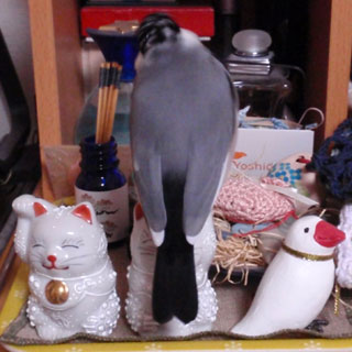 そして、写真の右下に写っているのは、切り紙作家でもいらっしゃる、文鳥「もか」のマイペースな日々のいずみんさんから買わせていただいた文鳥さんの切り紙。