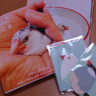 いえ、今日は例のいつの間にか写真紹介が頓挫してしまったコトリちゃんカレンダーの写真ではなくって(汗)、Pee BlogのMeさんからいただいたMe様純正「(二代目)ピーちゃんカレンダー2009」です!