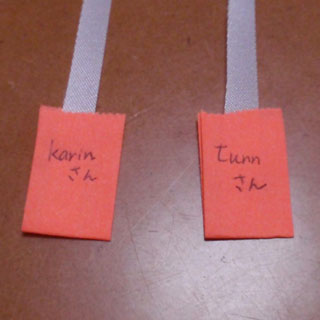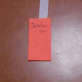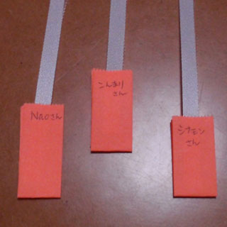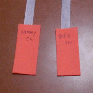 その結果、大好きな白いリボンの先に応募していただいた方のお名前の紙を貼り、カップの中に入れて、「彼女」が持ち去ったリボンの方を当選!という方法にしました。