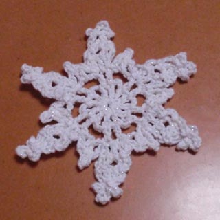 えーっ、予定では白いモヘア毛糸あるいはレース糸で編んだ雪の結晶のようなオーナメントにする予定です。