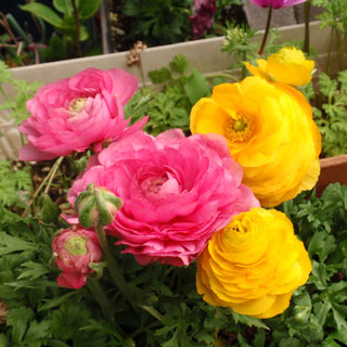 このところの暖かさで桜は散ってしまったようですが、我が家の庭ではラナンキュラスが盛大に咲き始めています。