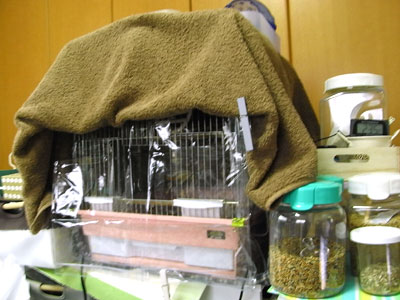 昼間は同居しているチビッコ・桜こと吹雪嬢は、昼なお暗い「彼女」宅に最初は困惑している様子だったが、Chiara氏の説明に納得し、独り放鳥を楽しんでいるとのこと。