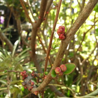 冬の始めに庭で枯れた枝を見つけ、「あぁ、今年は手入れをちゃんとしてあげられなくて、枯らしてしまったんだ…」と、秘かに落ち込んでいたのですが、庭木のほとんどが葉を落としてしまった最近になって、枝にたくさんのつぼみをつけているのを発見!
