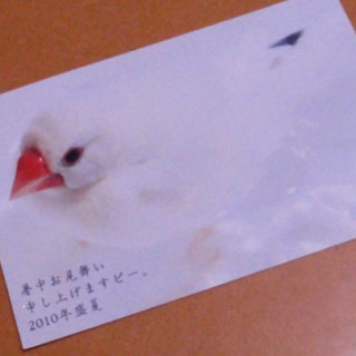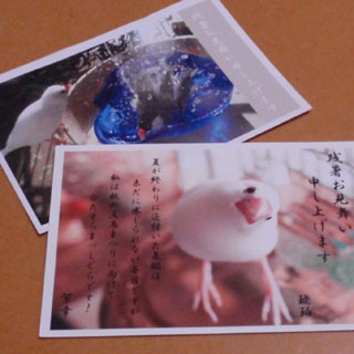 みなさんからいただいた暑中見舞いや残暑見舞いには、みなさんの愛鳥さんが印刷されているでしょう?