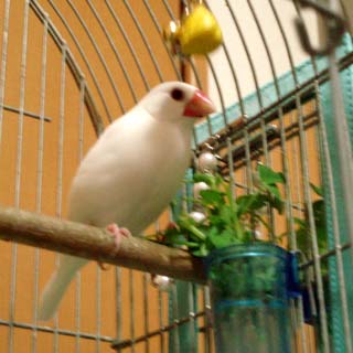 臆病なクセに好奇心旺盛な「彼女」は、鳥カゴの中を飛び回っています(笑)。