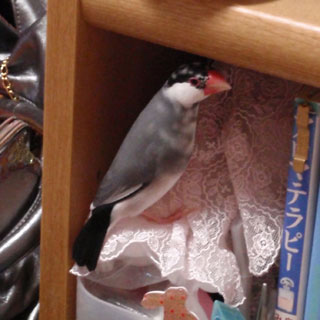 小雪は「換羽っぽい」という程度で、それよりも日々、暗くて狭い場所の探求に余念がなく、文鳥探検隊の毎日を過ごしております(汗)。